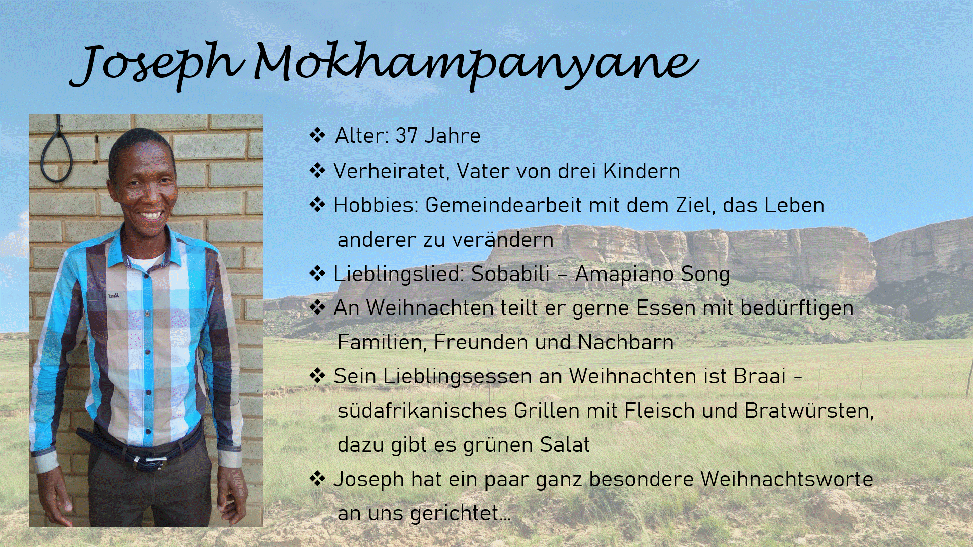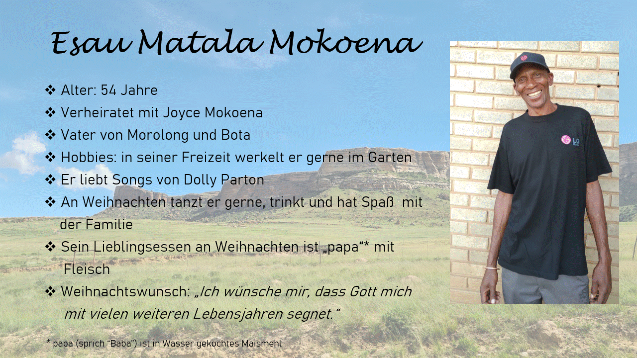 Ein weiteres Türchen - ein weiterer Helfer in QwaQwa, den wir euch vorstellen dürfen! 😊