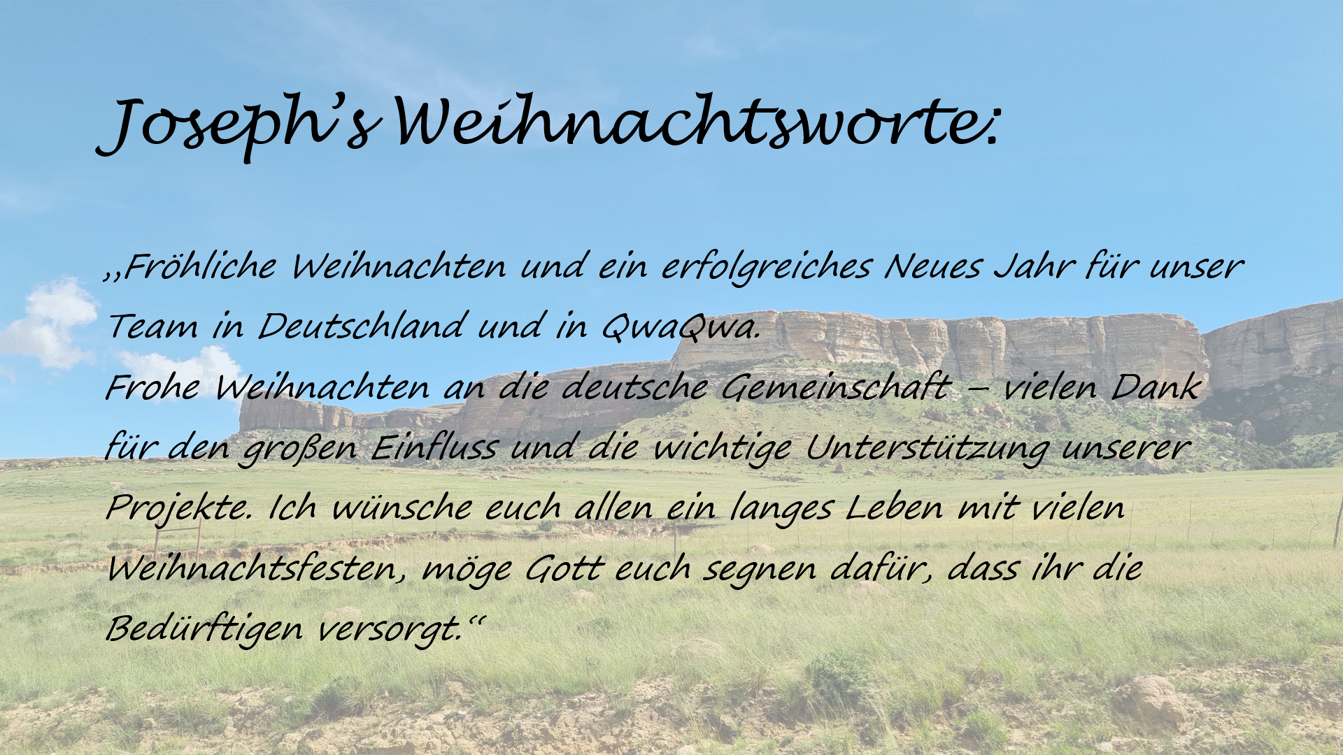 Mit diesem ganz besonderen Weihnachts-Videogruß aus QwaQwa möchten wir uns bei allen Unterstützern und Unterstützerinnen hier in Deutschland bedanken: