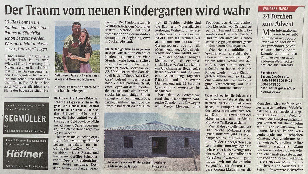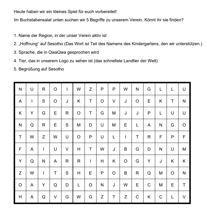 Hier halten wir euch über Neuigkeiten aus QwaQwa auf dem Laufenden.